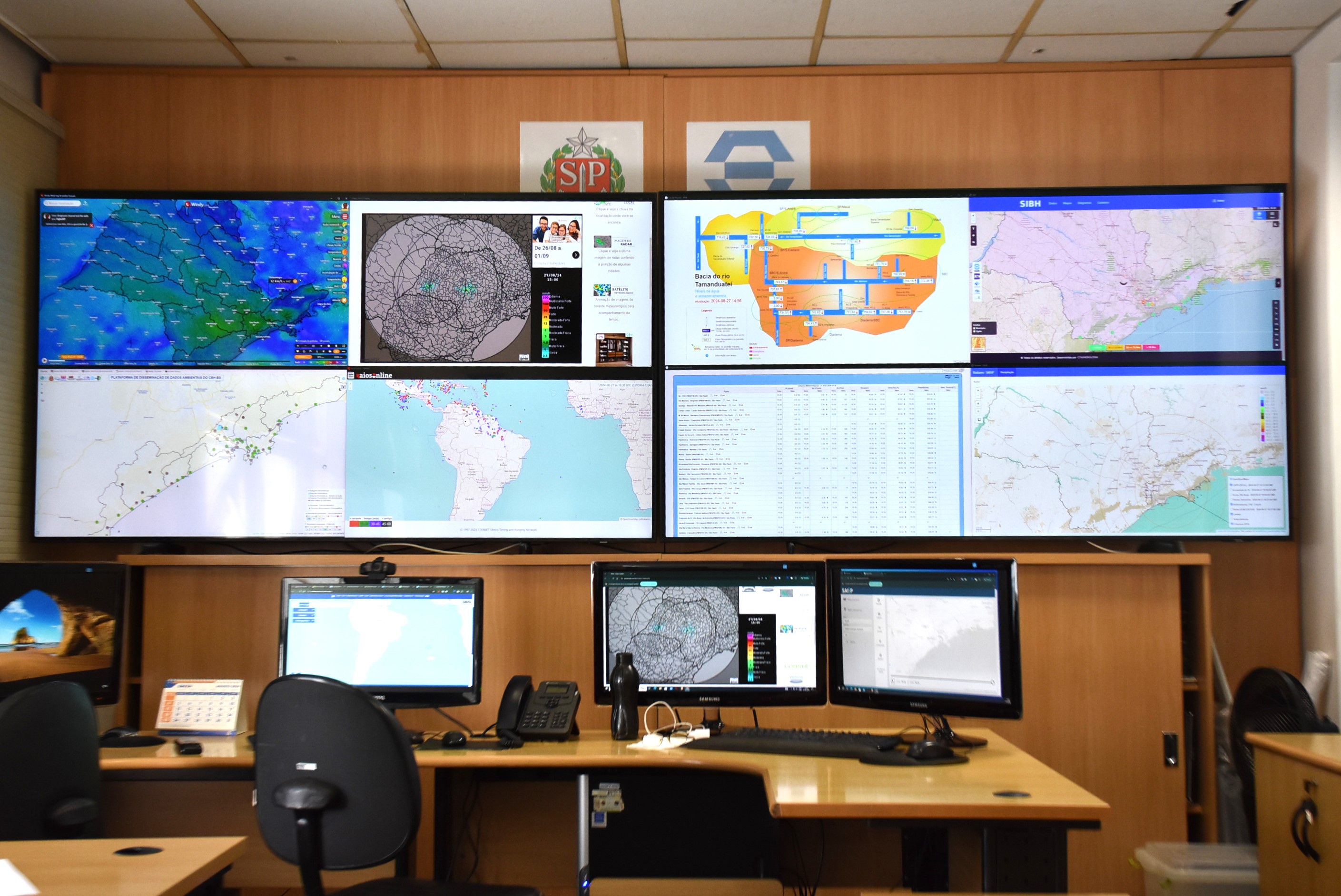 Monitoramento em tempo real através de satélites, radares, pluviometria para análise de chuva e fluviometria para niveis de rios, córregos e outros cursos d'agua.